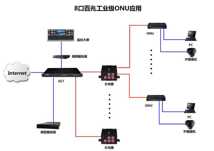 網絡支持多級分光的總線型架構,符合配網輸電線結構。
