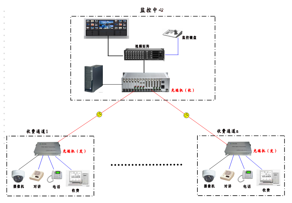 高速公路收費系統一般采用點對點傳輸方案,用于視頻信號、收費、對講、電話等信號的傳輸。