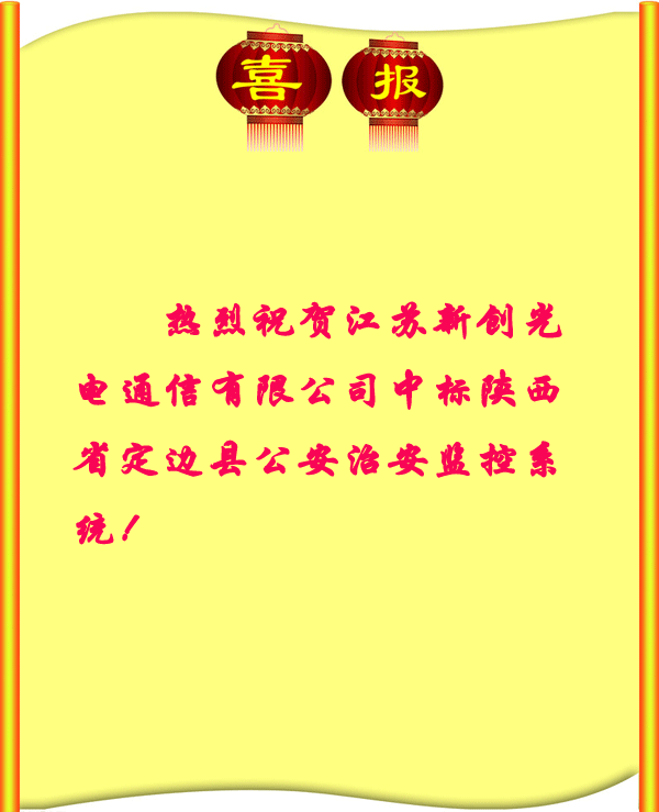 2009-08-16,江蘇新創光端機中標陜西省定邊縣公安治安監控系統。