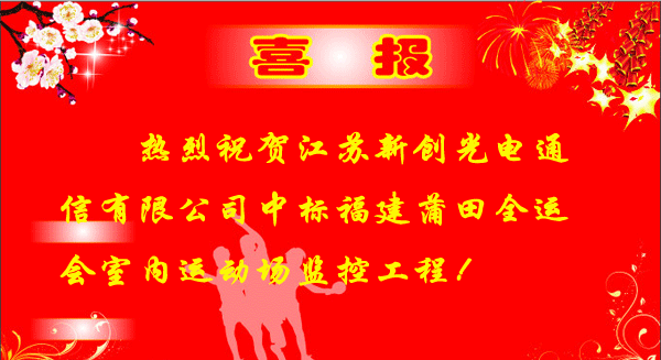 2010-01-11,江蘇新創(chuàng)全數(shù)字光端機中標福建蒲田全運會室內運動場監(jiān)控工程。