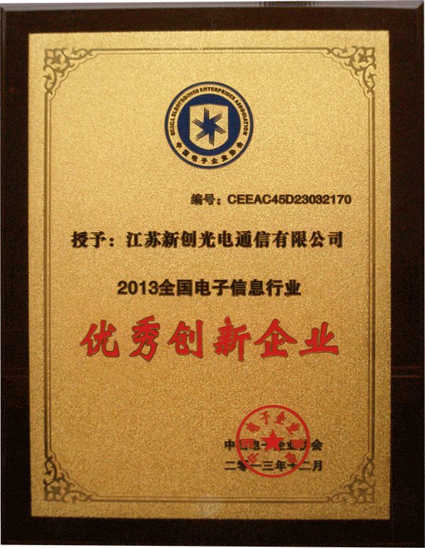 優(yōu)秀創(chuàng)新企業(yè)證書