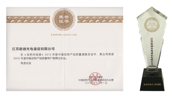 中國(guó)安防產(chǎn)品質(zhì)量用戶信得過(guò)企業(yè)證書
