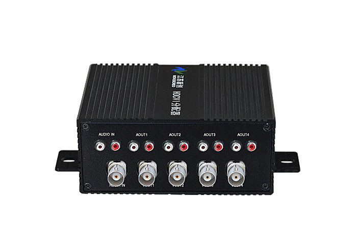 1進4出HDCVI模擬音頻分配器,卡儂/端子/3.5mm/RCA接口,獨立/冗余供電,壁掛,通用型 |