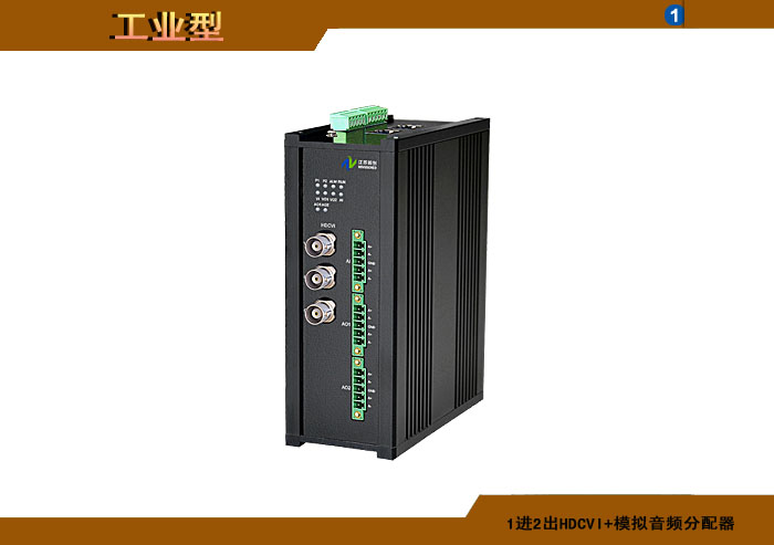 1進2出HDCVI模擬音頻分配器,卡儂/端子/3.5mm/RCA接口,獨立/冗余/總線供電(DC18~36V/5V),導軌,工業型 |
