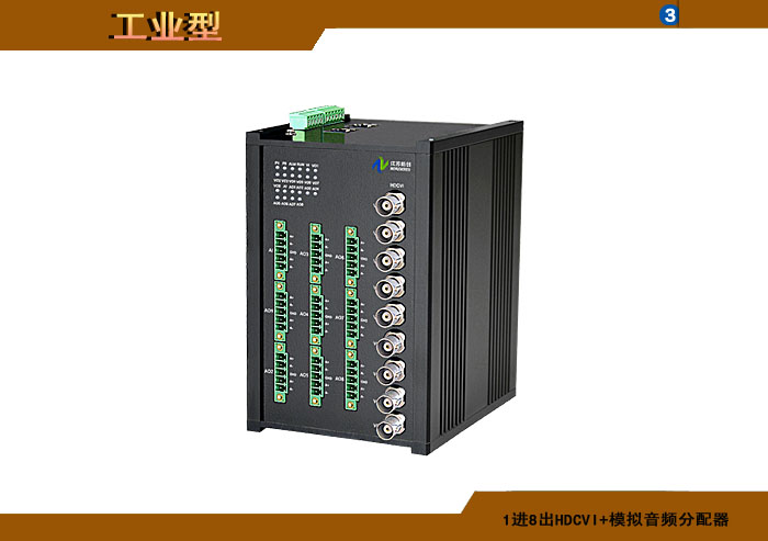 1進8出HDCVI模擬音頻分配器,卡儂/端子/3.5mm/RCA接口,獨立/冗余/總線供電(DC18~36V/5V),導軌,工業型 |
