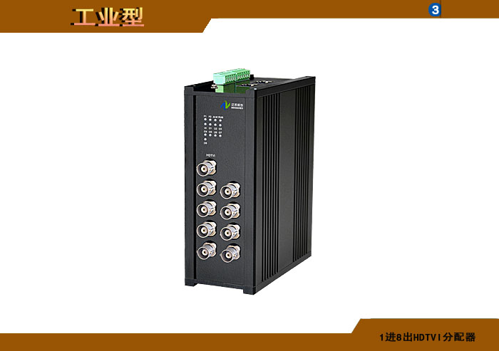 1進8出HDTVI分配器,獨立/冗余/總線供電(DC18~36V/5V),導軌,工業型 |