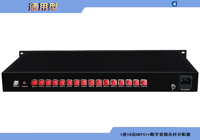 | 配置 | 1/2/4/8/16進2/4/8/16/32出HDTVI數字音頻光纖分配器,獨立/冗余供電,壁掛/機架,防水型 | ||