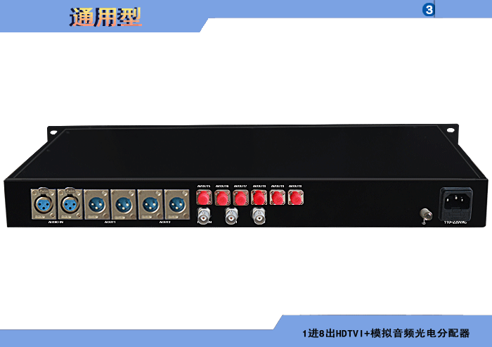 1進8出HDTVI模擬音頻光電分配器,卡儂/端子/3.5mm/RCA接口,獨立/冗余供電,機架,通用型 |
