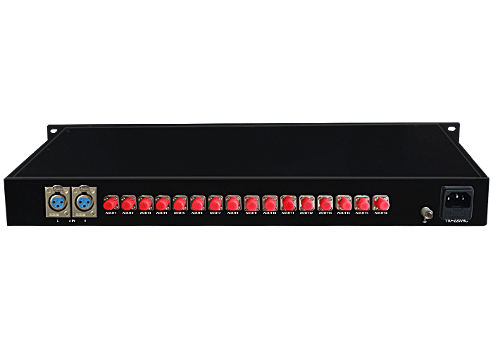 1進(jìn)16出模擬音頻光纖分配器,卡儂/工業(yè)接線子/3.5mm/RCA接口,平衡/非平衡,立體聲/單聲道,獨(dú)立/冗余供電,機(jī)架,通用型 |