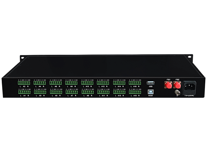 16路模擬音頻/USB光電端口服務器,卡儂/工業接線子/3.5mm/RCA接口,平衡/非平衡,立體聲/單聲道,1路USB主口輸入、可選多路下游口輸出,可選多路USB和模擬音頻電纜或光纖接口,可選內置數字隔離器,最大隔離電壓2500/5000Vrms,可選內置5/10KA浪涌保護器,獨立/冗余/總線供電(DC18~36V/5V),壁掛/插卡/機架,通用型 |