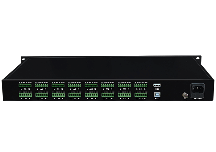 16路模擬音頻/USB端口服務器,卡儂/工業接線子/3.5mm/RCA接口,平衡/非平衡,立體聲/單聲道,1路USB主口輸入、可選多路下游口輸出,可選內置數字隔離器,最大隔離電壓2500/5000Vrms,可選內置5/10KA浪涌保護器,獨立/冗余/總線供電(DC18~36V/5V),壁掛/插卡/機架,通用型 |