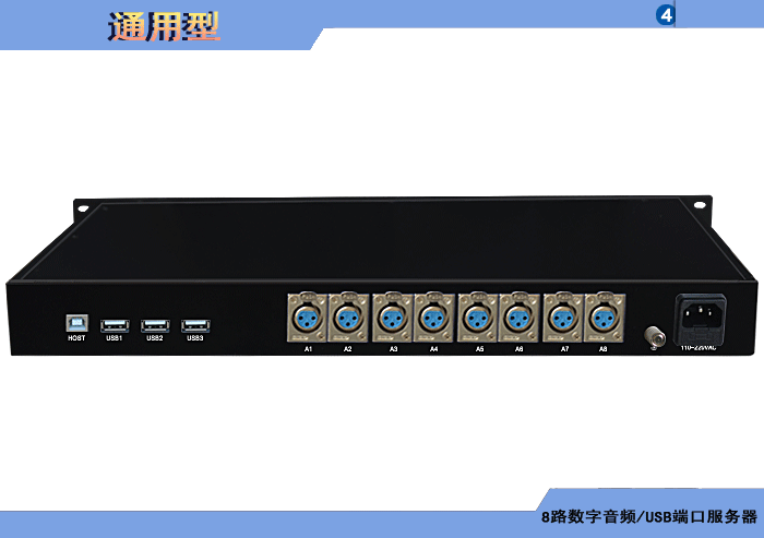8路數字音頻/USB端口服務器,AES平衡/非平衡/SPDIF/光纖數字音頻,1路USB主口輸入、可選多路下游口輸出,可選內置數字隔離器,最大隔離電壓2500/5000Vrms,可選內置5/10KA浪涌保護器,獨立/冗余/總線供電(DC18~36V/5V),壁掛/插卡/機架,通用型 |