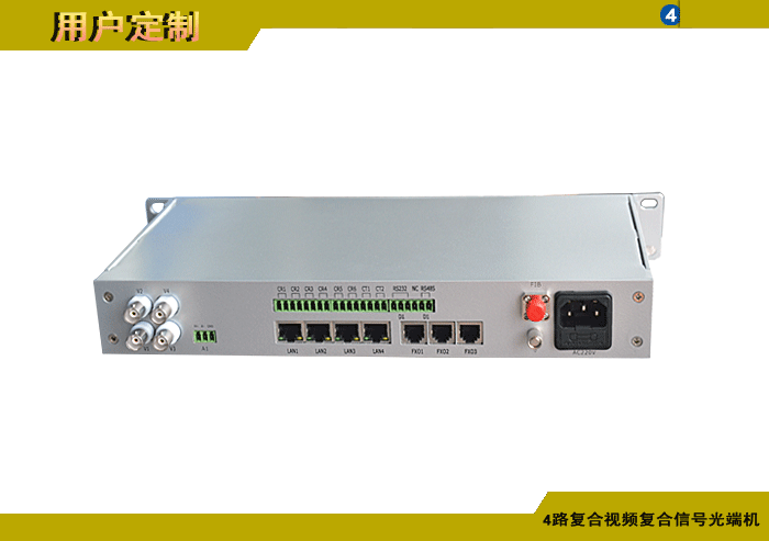 4路復(fù)合視頻復(fù)合信號型光端機發(fā)射機/接收機,復(fù)合信號可選,單模/多模/塑料,1/2纖,ST/FC/SC/LC/SFP光接口,15/20/25/32dB,獨立/冗余供電,機架,通用型 |