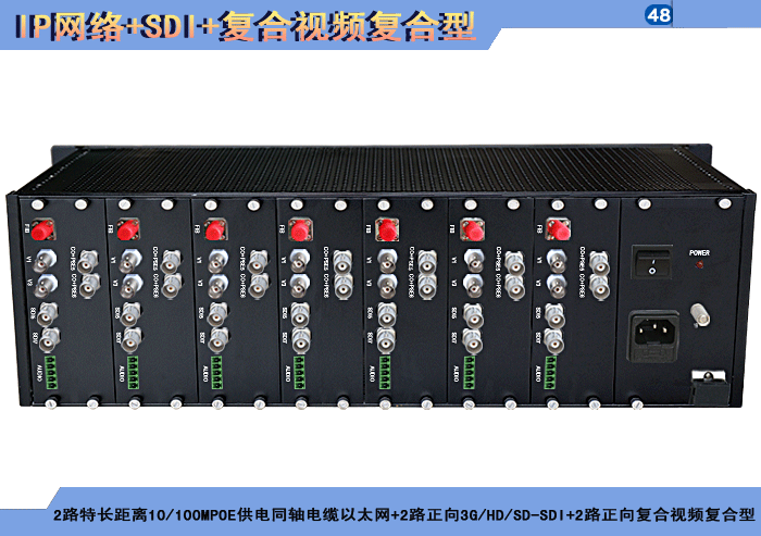 | 配置 | 4路特長(zhǎng)距離10/100MPOE供電同軸電纜以太網(wǎng)+4路正向3G/HD/SD-SDI+4路正向復(fù)合視頻復(fù)合信號(hào)型光端機(jī)發(fā)射機(jī)/接收機(jī),1/2/4/8擴(kuò)容口可選,復(fù)合信號(hào)可選,單模/多模/塑料,1/2纖,ST/FC/SC/LC/SFP光接口,15/20/25/32dB,獨(dú)立/冗余/總線供電(DC18~36V/5V),導(dǎo)軌,工業(yè)型,非網(wǎng)管/網(wǎng)管/帶光纖數(shù)字診斷網(wǎng)管 | ||