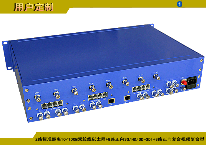 | 配置 | 1/2/4路特長(zhǎng)距離10/100M同軸電纜以太網(wǎng)+1/2/4路正向3G/HD/SD-SDI+1/2/4路正向復(fù)合視頻復(fù)合信號(hào)型光端機(jī)發(fā)射機(jī)/接收機(jī),復(fù)合信號(hào)可選,單模/多模/塑料,1/2纖,ST/FC/SC/LC/SFP光接口,15/20/25/32dB,獨(dú)立/冗余供電,插卡,通用型 | ||