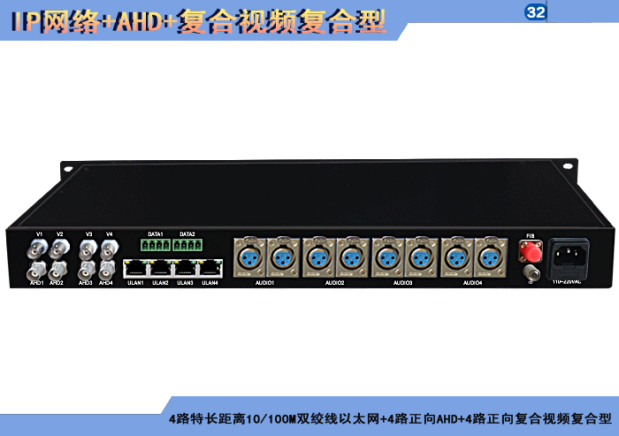 1/2/4路特長距離10/100M雙絞線以太網+1/2/4路正向AHD+1/2/4路正向復合視頻復合信號型光端機發射機/接收機,復合信號可選,單模/多模/塑料,1/2纖,ST/FC/SC/LC/SFP光接口,15/20/25/32dB,獨立/冗余供電,機架,通用型 |