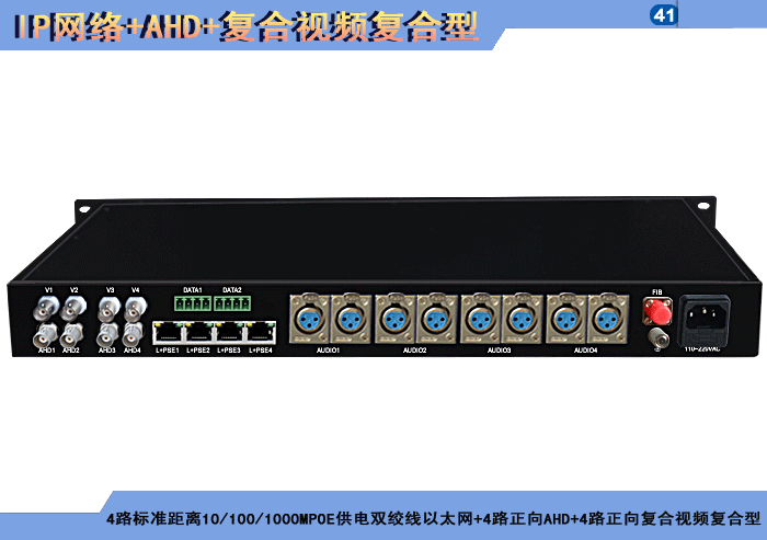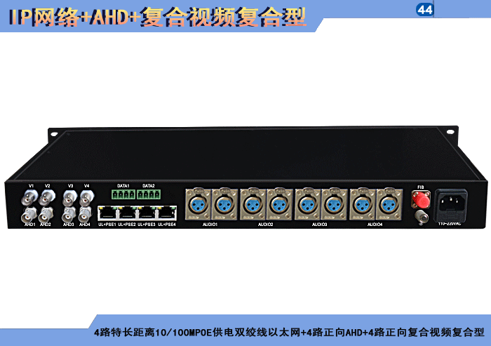 1/2/4路特長距離10/100MPOE供電雙絞線以太網+1/2/4路正向AHD+1/2/4路正向復合視頻復合信號型光端機發射機/接收機,復合信號可選,單模/多模/塑料,1/2纖,獨立/冗余供電,壁掛,高可靠型 |