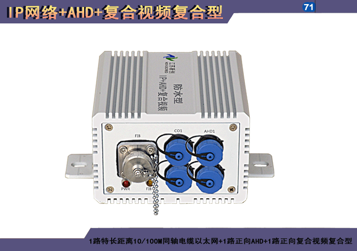 1/2/4路特長距離10/100M雙絞線以太網+1/2/4路正向AHD+1/2/4路正向復合視頻復合信號型光端機發射機/接收機,復合信號可選,單模/多模/塑料,1/2纖,獨立/冗余供電,壁掛,防水型 |