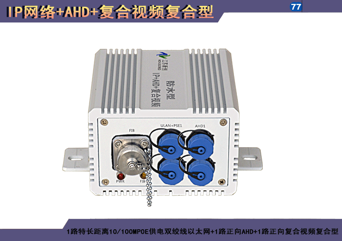 1/2/4路特長距離10/100MPOE供電雙絞線以太網+1/2/4路正向AHD+1/2/4路正向復合視頻復合信號型光端機發射機/接收機,復合信號可選,單模/多模/塑料,1/2纖,獨立/冗余供電,壁掛,防水型 |