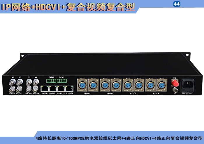 4路特長(zhǎng)距離10/100MPOE供電同軸電纜以太網(wǎng)+4路正向HDCVI+4路正向復(fù)合視頻復(fù)合信號(hào)型光端機(jī)發(fā)射機(jī)/接收機(jī),1/2/4/8擴(kuò)容口可選,復(fù)合信號(hào)可選,單模/多模/塑料,1/2纖,ST/FC/SC/LC/SFP光接口,15/20/25/32dB,獨(dú)立/冗余/總線供電(DC18~36V/5V),導(dǎo)軌,工業(yè)型,非網(wǎng)管/網(wǎng)管/帶光纖數(shù)字診斷網(wǎng)管 |