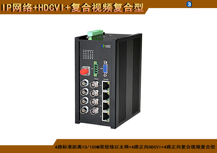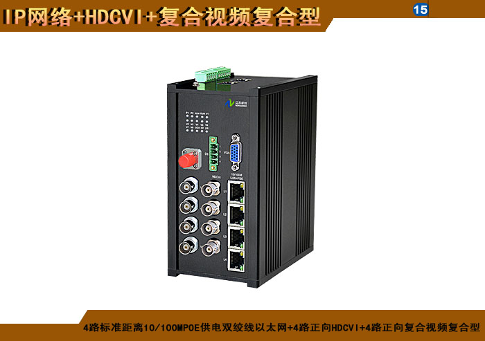 4路特長(zhǎng)距離10/100M雙絞線以太網(wǎng)+4路正向HDCVI+4路正向復(fù)合視頻復(fù)合信號(hào)型光端機(jī)發(fā)射機(jī)/接收機(jī),1/2/4/8擴(kuò)容口可選,復(fù)合信號(hào)可選,單模/多模/塑料,1/2纖,ST/FC/SC/LC/SFP光接口,15/20/25/32dB,獨(dú)立/冗余/總線供電(DC18~36V/5V),導(dǎo)軌,工業(yè)型,非網(wǎng)管/網(wǎng)管/帶光纖數(shù)字診斷網(wǎng)管 |