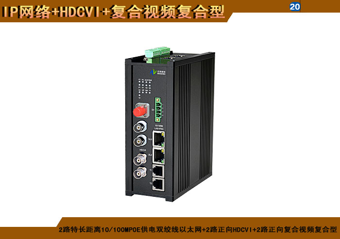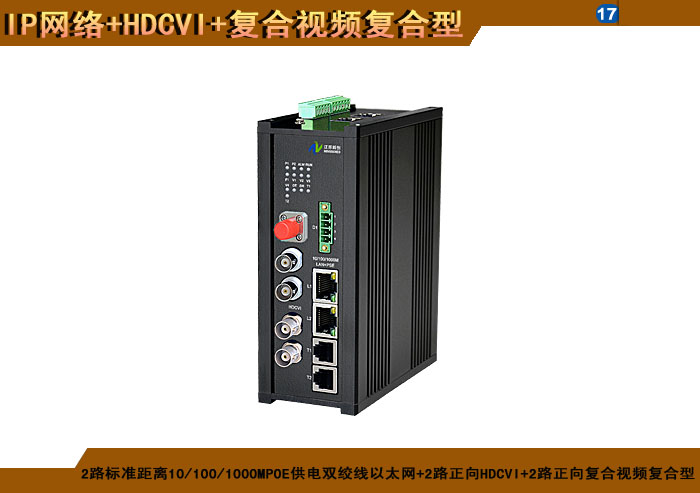 2路特長(zhǎng)距離10/100MPOE供電雙絞線以太網(wǎng)+2路正向HDCVI+2路正向復(fù)合視頻復(fù)合信號(hào)型光端機(jī)發(fā)射機(jī)/接收機(jī),1/2/4/8擴(kuò)容口可選,復(fù)合信號(hào)可選,單模/多模/塑料,1/2纖,ST/FC/SC/LC/SFP光接口,15/20/25/32dB,獨(dú)立/冗余/總線供電(DC18~36V/5V),導(dǎo)軌,工業(yè)型,非網(wǎng)管/網(wǎng)管/帶光纖數(shù)字診斷網(wǎng)管 |