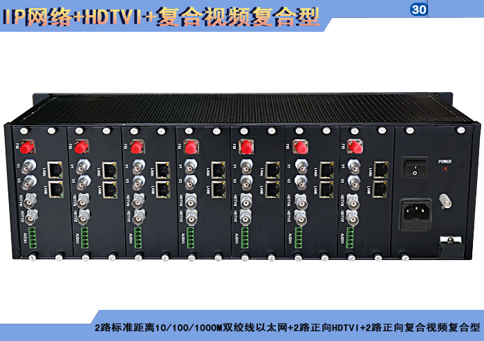 1/2/4路標準距離10/100/1000M雙絞線以太網+1/2/4路正向HDTVI+1/2/4路正向復合視頻復合信號型光端機發射機/接收機,復合信號可選,單模/多模/塑料,1/2纖,獨立/冗余供電,機架,高可靠型 |