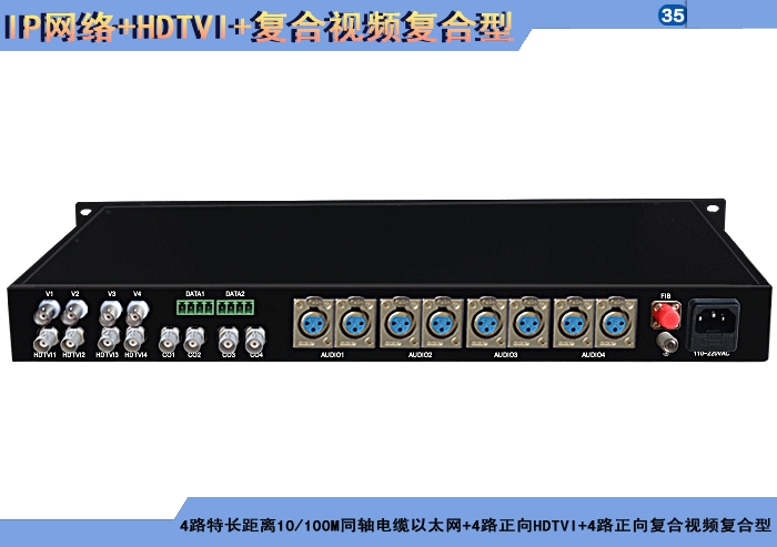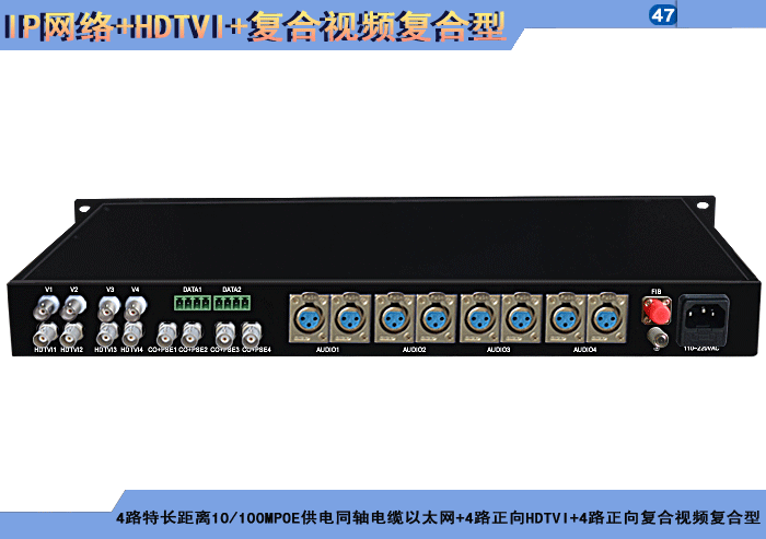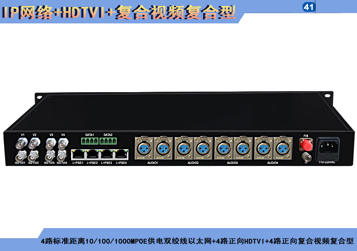 1/2/4路特長距離10/100MPOE供電同軸電纜以太網+1/2/4路正向HDTVI+1/2/4路正向復合視頻復合信號型光端機發射機/接收機,復合信號可選,單模/多模/塑料,1/2纖,獨立/冗余供電,機架,防水型 |