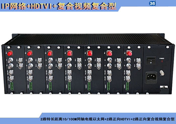 1/2/4路特長距離10/100M同軸電纜以太網+1/2/4路正向HDTVI+1/2/4路正向復合視頻復合信號型光端機發射機/接收機,復合信號可選,單模/多模/塑料,1/2纖,獨立/冗余供電,機架,高可靠型 |