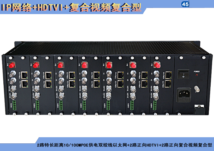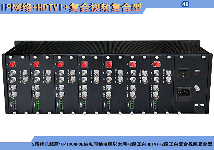1/2/4路特長距離10/100MPOE供電同軸電纜以太網+1/2/4路正向HDTVI+1/2/4路正向復合視頻復合信號型光端機發射機/接收機,復合信號可選,單模/多模/塑料,1/2纖,獨立/冗余供電,機架,高可靠型 |