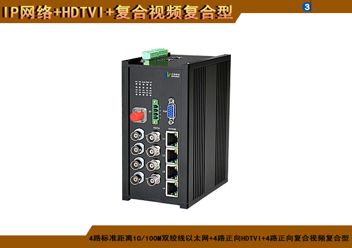 1/2/4路標準距離10/100/1000M雙絞線以太網+1/2/4路正向HDTVI+1/2/4路正向復合視頻復合信號型光端機發射機/接收機,復合信號可選,單模/多模/塑料,1/2纖,獨立/冗余供電,機架,防水型 |