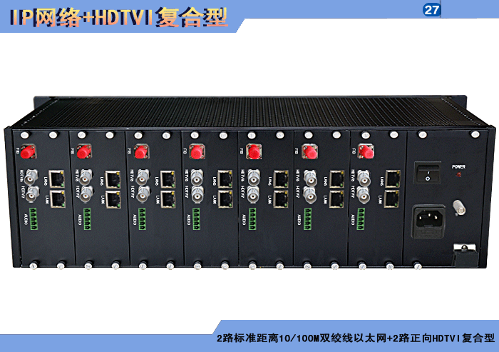 2路特長距離10/100M雙絞線以太網+2路正向HDTVI復合信號型光端機發射機/接收機,1/2/4/8擴容口可選,復合信號可選,單模/多模/塑料,1/2纖,ST/FC/SC/LC/SFP光接口,15/20/25/32dB,獨立/冗余/總線供電(DC18~36V/5V),導軌,工業型,非網管/網管/帶光纖數字診斷網管 |