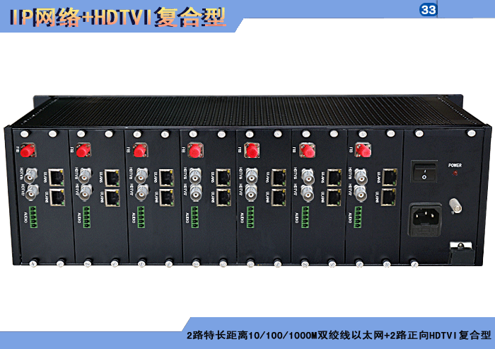 1/2/4路特長距離10/100MPOE供電同軸電纜以太網+1/2/4路正向HDTVI復合信號型光端機發射機/接收機,復合信號可選,單模/多模/塑料,1/2纖,ST/FC/SC/LC/SFP光接口,15/20/25/32dB,獨立/冗余供電,機架,通用型 |