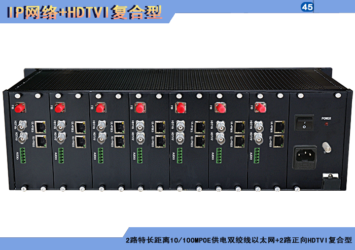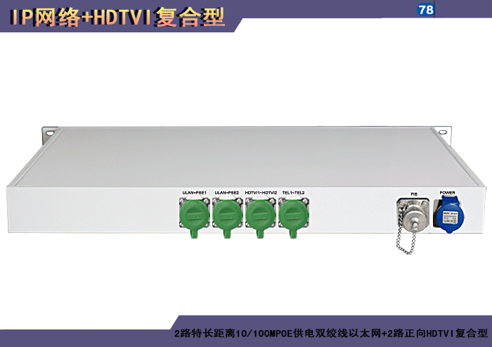 1/2/4路特長距離10/100MPOE供電雙絞線以太網+1/2/4路正向HDTVI復合信號型光端機發射機/接收機,復合信號可選,單模/多模/塑料,1/2纖,獨立/冗余供電,機架,高可靠型 |