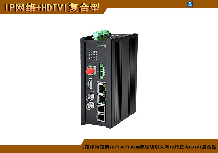 2路標準距離10/100/1000M雙絞線以太網+2路正向HDTVI復合信號型光端機發射機/接收機,1/2/4/8擴容口可選,復合信號可選,單模/多模/塑料,1/2纖,ST/FC/SC/LC/SFP光接口,15/20/25/32dB,獨立/冗余/總線供電(DC18~36V/5V),導軌,工業型,非網管/網管/帶光纖數字診斷網管 |