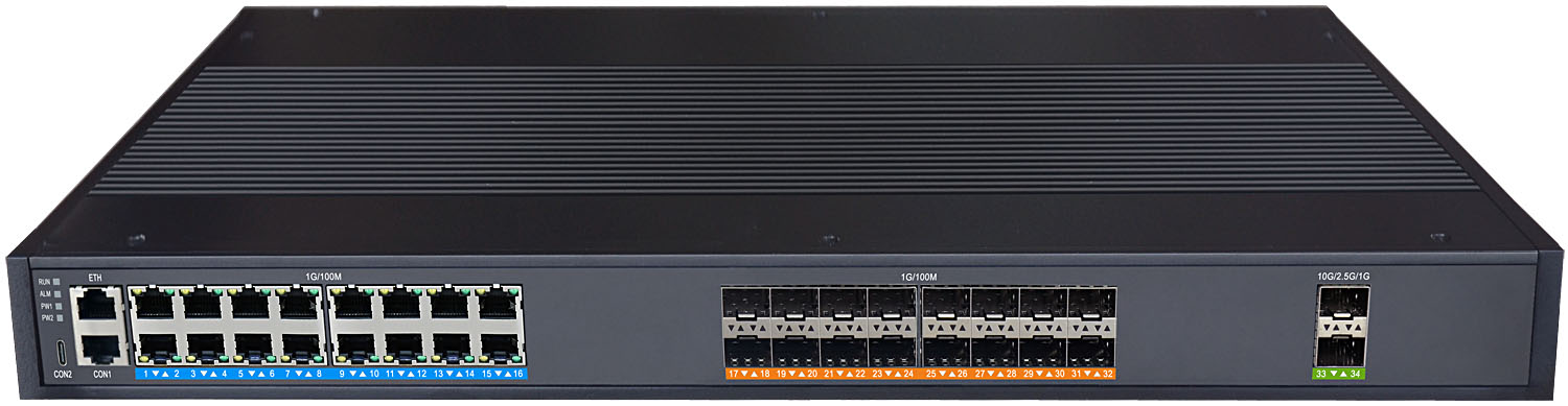 2 x SFP+(10G/2.5G/1G)光 + 32 x SFP(1G/100M)光,工業型
