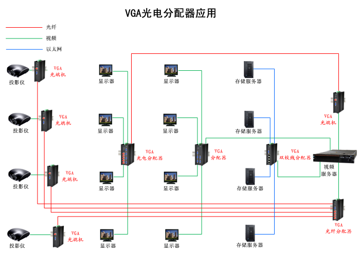 配置 1/2/4/8/16進2/4/8/16/32出VGA光電分配器,獨立/冗余供電,壁掛/機架,高可靠型