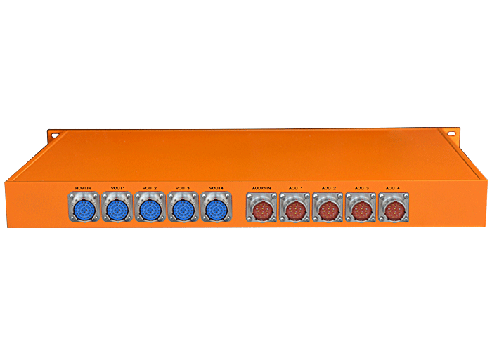 1進4出HDMI模擬音頻分配器,內置數字均衡器/抖動去除器可選,卡儂/端子/3.5mm/RCA接口,獨立/冗余/總線供電(DC18~36V/5V),導軌,工業型 |
