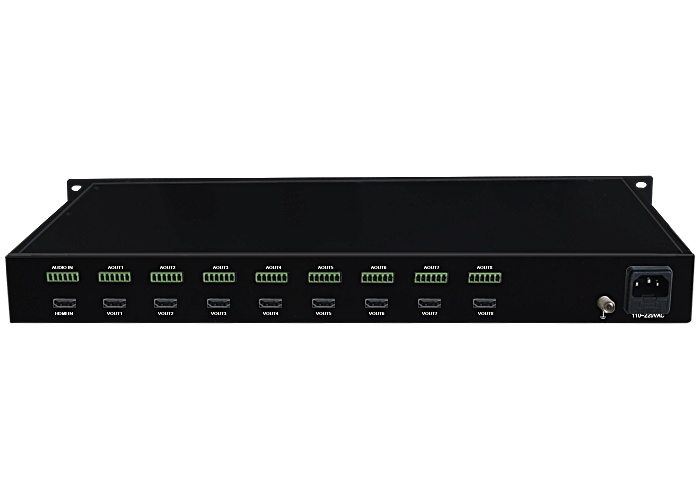 1進8出HDMI模擬音頻分配器,內置數字均衡器/抖動去除器可選,卡儂/端子/3.5mm/RCA接口,獨立/冗余供電,壁掛,通用型 |