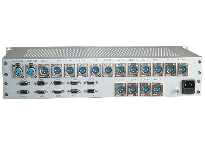 配置 1進8出VGA模擬音頻分配器,卡儂/端子/3.5mm/RCA接口,獨立/冗余供電,機架,通用型