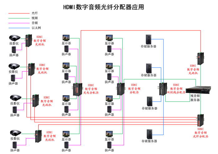 | 配置 | 1/2/4/8/16進2/4/8/16/32出HDMI數字音頻光纖分配器,內置數字均衡器/抖動去除器可選,獨立/冗余供電,壁掛/機架,防水型 | ||