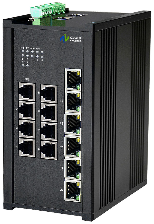 8路模擬電話/以太網網關,可選多路10/100M或10/100/1000M以太網電纜或光纖接口,可選內置數字隔離器,最大隔離電壓2500/5000Vrms,可選內置5/10KA浪涌保護器,獨立/冗余供電,壁掛/插卡/機架,通用型 |