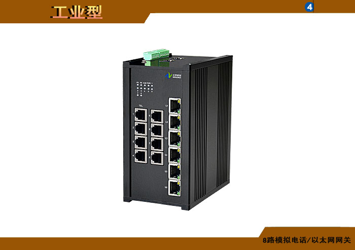 8路模擬電話/以太網網關,可選多路10/100M或10/100/1000M以太網電纜或光纖接口,可選內置數字隔離器,最大隔離電壓2500/5000Vrms,可選內置5/10KA浪涌保護器,獨立/冗余/總線供電(DC18~36V/5V),導軌,工業型 |