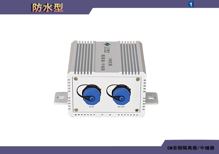 EM音頻隔離器(中繼器) 防水型封裝采用IP67/68等高等級防水機箱、防水接插件和連接線纜,使用相應的高性能防水密封、無浸潤和抗腐蝕技術,可以使得產品長期工作在高濕度、雨淋、風雪災難、水下作業、海底鉆探和井下救災等需要高IP等級密封防水和腐蝕場合。