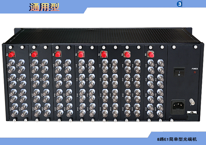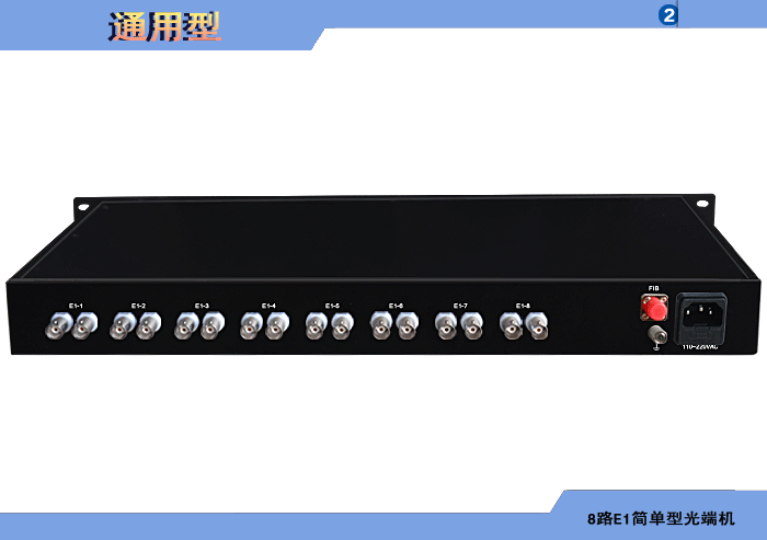 8路E1簡單型光端機發射機/接收機,數據可選,單模/多模/塑料,1/2纖,ST/FC/SC/LC/SFP光接口,15/20/25/32dB,獨立/冗余供電,機架,通用型 |