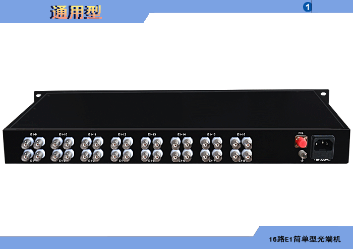 16路E1簡單型光端機發射機/接收機,數據可選,單模/多模/塑料,1/2纖,ST/FC/SC/LC/SFP光接口,15/20/25/32dB,獨立/冗余供電,機架,通用型 |