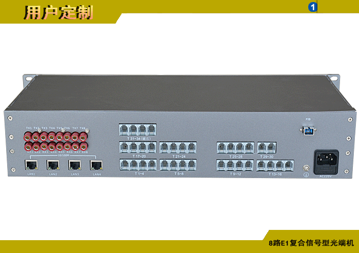 8路E1復(fù)合信號型光端機發(fā)射機/接收機,復(fù)合信號可選,單模,1纖,SC光接口,15/20/25/32dB,獨立供電,機架,通用型 |