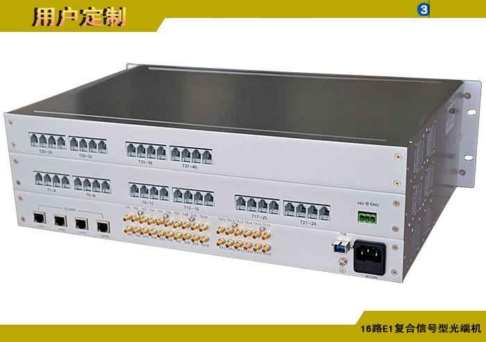 16路E1復(fù)合信號型光端機發(fā)射機/接收機,復(fù)合信號可選,單模,1纖,SC光接口,15/20/25/32dB,獨立供電,機架,通用型 |