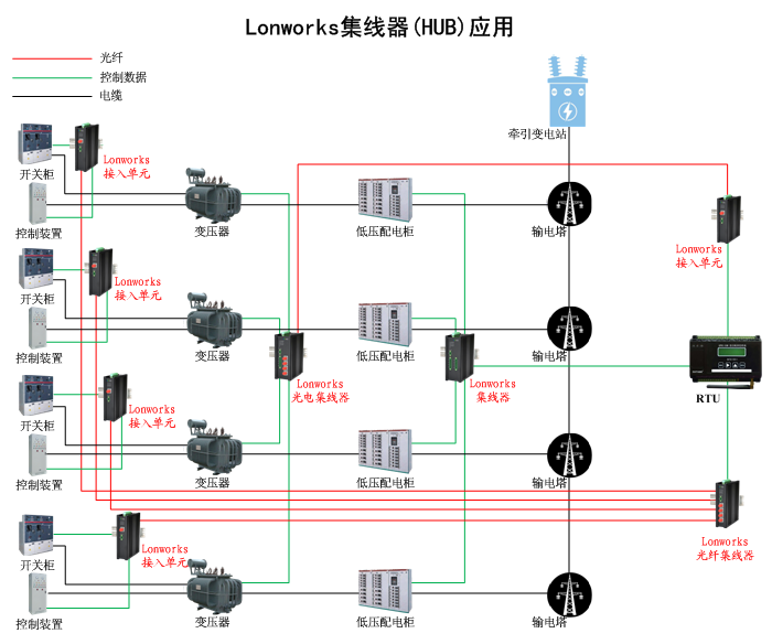 Lonworks集線器(HUB)已經廣泛應用在能源發電和輸配變電網、石油化工、燃煤氣自來水及污水處理、地下管廊、礦山開采及冶煉廠礦企業、高鐵及地鐵軌道交通、橋梁隧道、城市管理公交BRT及公用設施、海島港灣碼頭、大壩及河道水利、環境監測和保護、物聯網及大數據機房控制中心、食品加工、工業自動化自動控制PLC/DCS、機器人及視覺控制、傳感及執行器運動控制、醫學影像、船舶航海運輸、物探及地震海洋勘探、海上及水下作業及鉆探井平臺的等等的SCADA自動控制和數據采集系統中。
