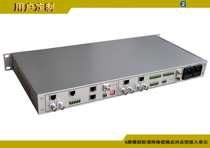 2/4路模擬標清網絡視頻交通信息點對點型接入單元,1光2電百兆/千兆以太網接口,多路RS-232/485/422/IO開關量可選,1路雙向音頻可選,單模/多模/塑料,獨立/冗余供電,機架,通用型 |
